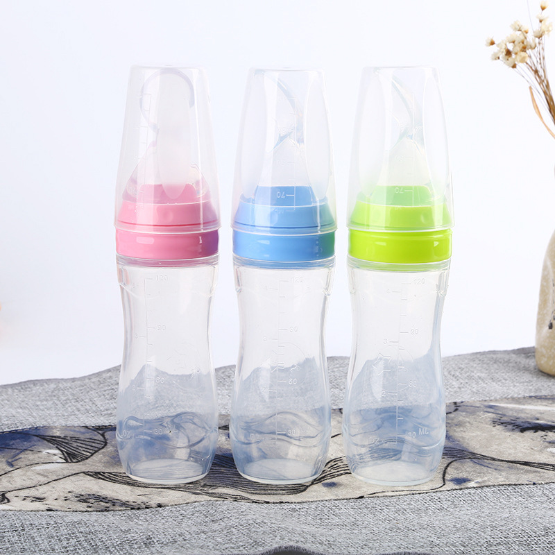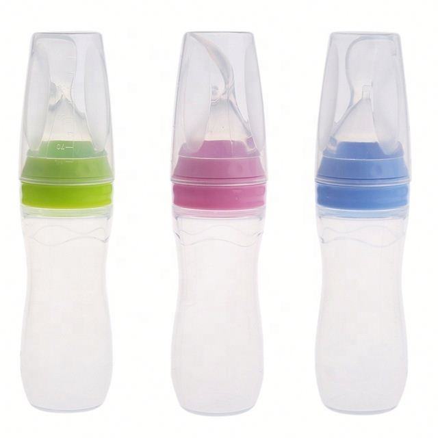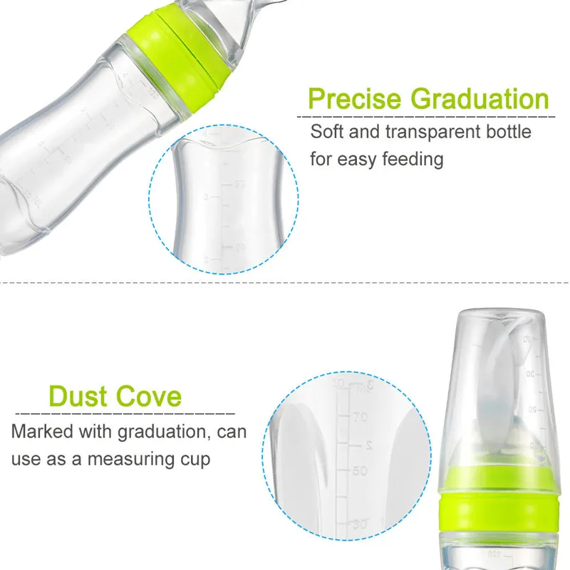 BPA Free 90ml Silicone Squeeze Bottle Spoon Toddler Food Dispensing Spoon Baby Feeding Bottle Spoon
