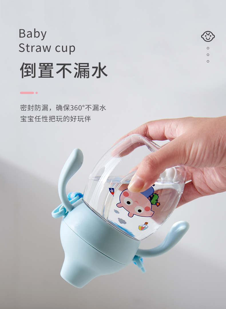 Products Details of 280ml Children’s Kids Double Handle Plastic Water Bottle With Ball Straw Baby No-spill Leakproof Drinking Water Milk Sippy Cup