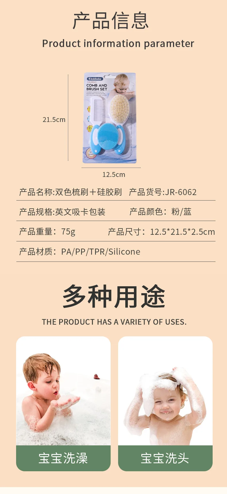 [Size] :Â 12.5*21.5*2.5cm Comb3*13.5*1 Brush5*14*2.3cmSilicone brush5*6*1.5cm