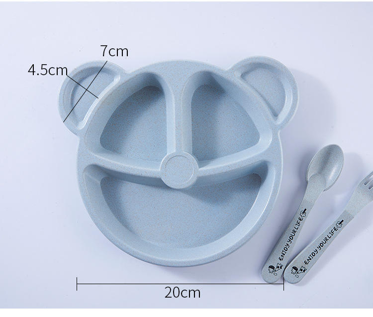 Baby Bowl+spoon+fork Feeding Food Tableware Set Cartoon Bear Kids Dishes Eating Dinnerware Anti-hot Wheat Straw Training Plate