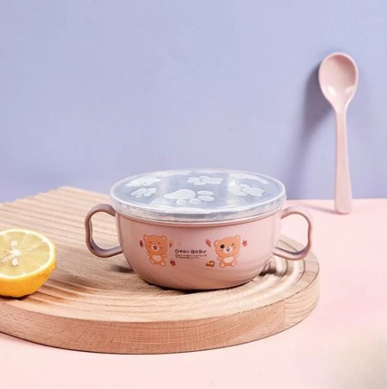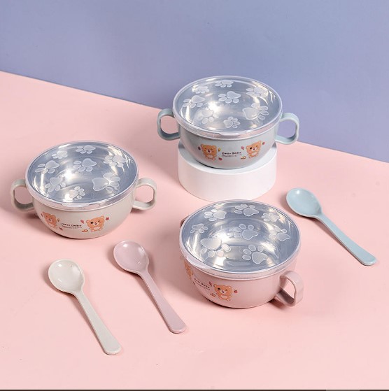 Product details of Baby Feeding Bowl with Lids Stainless Steel Insulated Bowl Spoon Set