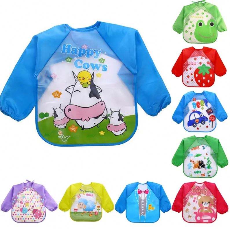 Full Sleeves Washable Waterproof Feeding Bib for Babies and Kids – Random Color